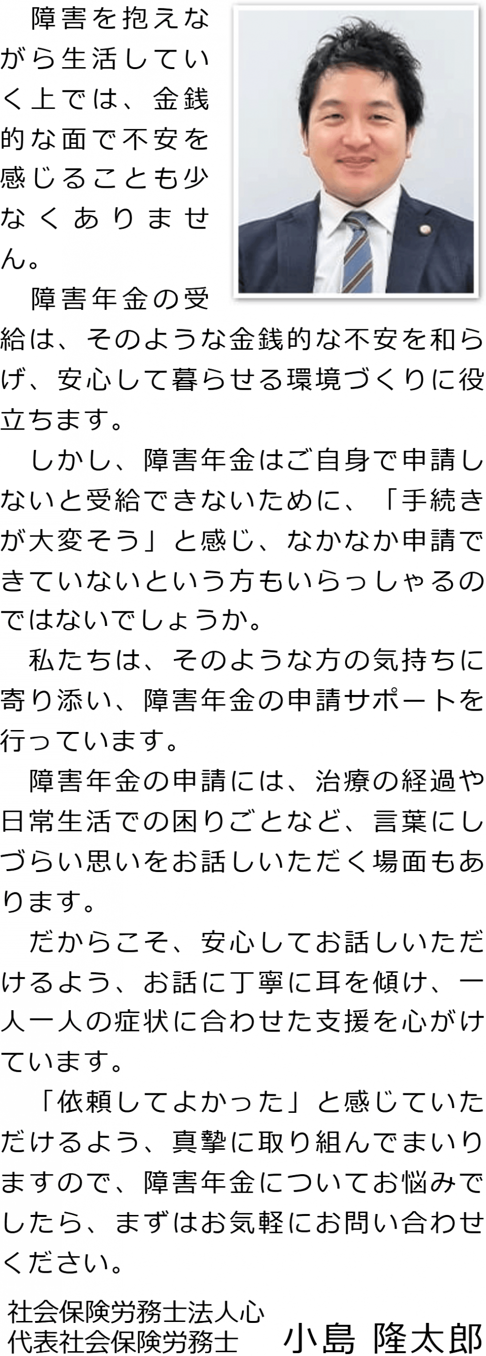 障害年金の申請をお考えの方は私たちにお気軽にご相談ください。